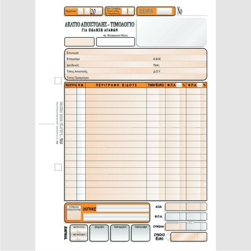 ΤΙΜΟΛΟΓΙΟ - ΔΕΛΤΙΟ ΑΠΟΣΤ ΠΕΤΡΕΛ. ΘΕΡΜ. 16Χ23 3Χ50 ΤΥΠΟΦΙΞ (3025)